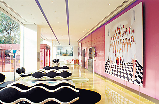 Karim Rashid je dizajnirao sve u hotelu, od eksterijera i namještaja do pribora za pisanje i bočica za šampone. Gosti na ulazu u hotel prolaze kroz obojenu staklenu kocku do lobija sa staklenim zidovima koji mijenjaju boju.