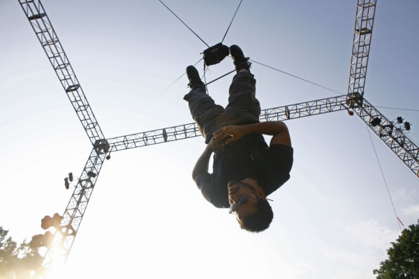 Mađioničar David Blaine vježba akrobaciju u Central Parku u New Yorku pripremajući se za rekordni podvig. Plan mu je bez sigurnosne mreže visiti naglavce punih 60 sati. (METRO PORTAL)