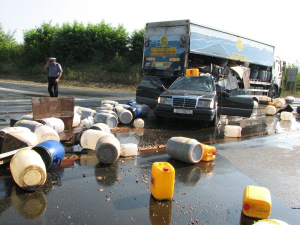 Uz loše ceste i kišu koje će u nadolazećim mjesecima biti sve više, novu prijetnju za sigurnost u prometu čini i ulje. Problem nije samo u onom koje povremeno curi iz starih krntija, jer kada kamion pun rabljenog jestivog ulja pogodi Mercedes, što dovoljno govori i o kvaliteti pojedinih vozila, raskrižja mogu postati prava automobilska klizališta. Upravo takav slučaj se dogodio u Gornjim Plavnicama pokraj Bjelovara, no srećom osim materijalne štete i posla za vatrogasne šmrkove, težih poslijedica nije bilo.