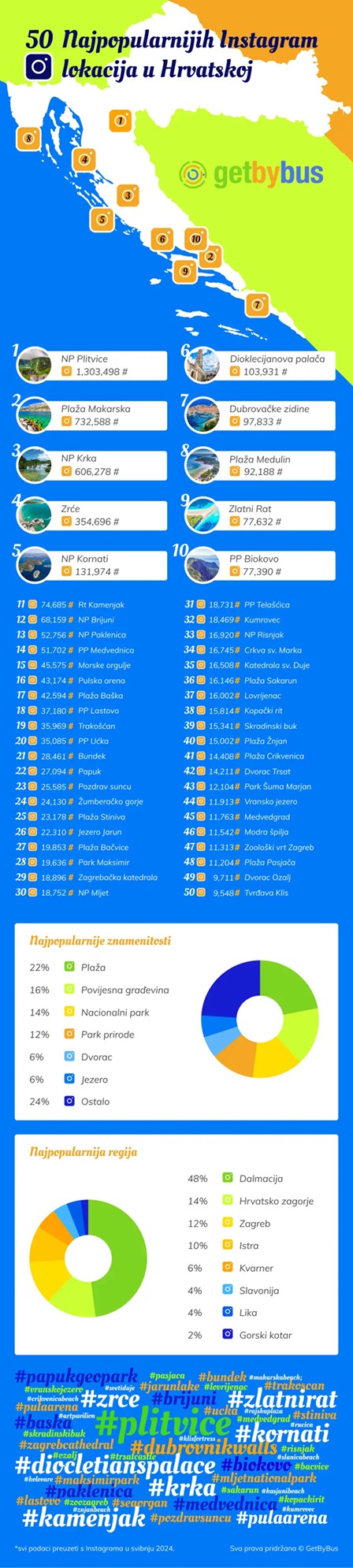 jeste li znali da se od 50 najpopularnijih Instagram lokacija u Hrvatskoj njih čak 8 nalazi u Zagrebu? Ili da 2. mjesto na našoj listi zauzima NP Krka s čak 606,278 mentiona?