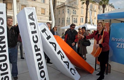 Domino kocke predstavljale su korupciju, harač, mutne poslove, nezaposlenost, nejednakost, nesigurnost, skupo zdravlje i siromaštvo