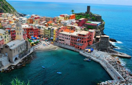 Cinque Terre je naziv za pet naselja u ligurskom priobalju Italije: Monterosso al Mare, Vernazza (na slici), Corniglia, Manarola i Riomaggiore, a doslovno znači „Pet zemalja". Obala, pet sela i okolna brda su dio Nacionalnog parka Cinque Terre. Ovaj je kraj jedan od najpoznatijih i najprepoznatljivijih na Mediteranu i vrlo je popularna turistička destinacija.