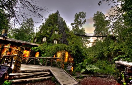 Ime mu u prijevodu znači „magična planina", ovaj je jedinstveni hotel u svijetu oblikovan tako da podsjeća na planinu sa čijeg se vrha slijeva slap. Nalazi se unutar zaštićenog parka prirode Huilo Huilo.