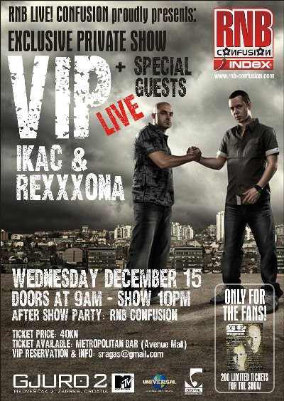 Koncert je zamišljen kao ekskluzivna promocija njihovog novog albuma "Živa istina" za hip-hop prijatelje i medije, a samo za najvjernije VIP fanove, RNB CONFUSION team u prodaju će pustit 200 ekskluzivnih ulaznica po cijeni od 40kn. Uz specijalne goste iznenađenja, prepoznatljivi flow Rexxxone i srčanost Ikca, koncert VIP-a je sigurno događaj koji ne smijete propustiti.