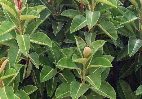 Gumijevac (Ficus elastica) - potječe iz Azije i može narasti do visine od pet metara. Uputno ga je redovito podrezivati kako ne bi rastao samo u dužinu nego i u širinu. Treba vrlo malo vode i vrlo je otporan. Voli svjetlo i sobnu temperaturu (izbjegavati blizinu radijatora). Ima lijepe blistave jajolike listove koje bi povremeno trebalo očistiti od prašine.