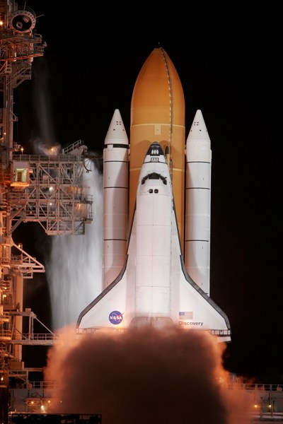 U spektakularnom noćnom lansiranju Discovery je osvijetlio nebo nad Floridom, na 25-obljetnicu programa "space shuttle", koji 2010. odlazi u mirovinu.