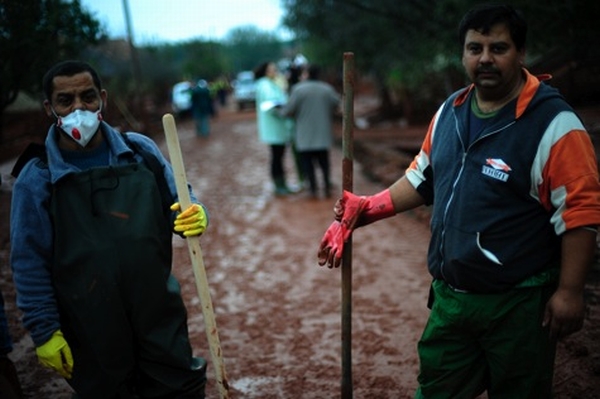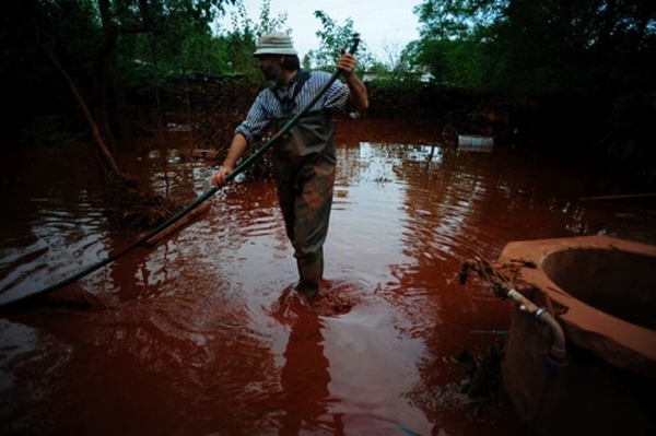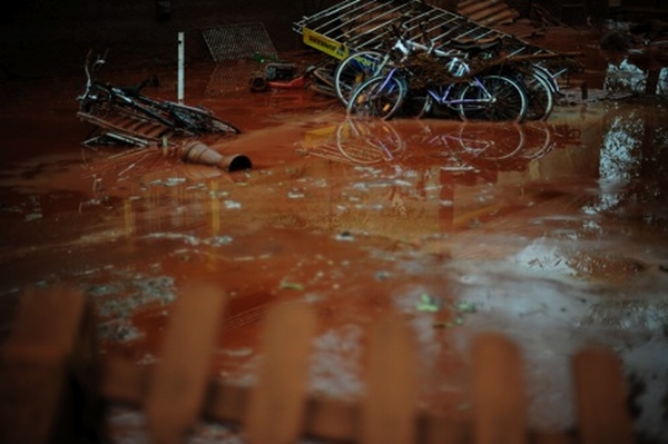 Ulice Devecsera i Kolontára sliče sceni iz holivudskog filma katastrofe: automobili i debla po ulicama, vojnici odjeveni u kemijsku zaštitnu opremu te stalan pogled na crveni toksični mulj koji guta ovo područje. Mađarska je proglasila izvanredno stanje u tri regije nakon poplave crvenog mulja iz kemijske tvornice koji je ubio četvero i ozlijedio 120 osoba.