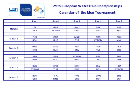 U skupini B igrat će Srbija, Mađarska, Rusija, Njemačka, Grčka i Makedonija. To je odlučeno na ždrijebu koji je večeras održan na Trgu bana Jelačića. Obavljen je i ždrijeb skupina ženskog turnira, a hrvatska reprezentacija svrstana je u skupinu A s ekipama Rusije, Italija i Grčke, dok su u B skupini Španjolska, Mađarske, Nizozemska i Njemačka.