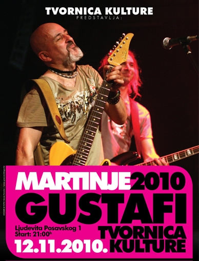 U Tvornici 12.11.2010. možete očekivati još jedan odličan i energičan nastup Gustafa, te zabavu u atmosferi nabijenoj najpoznatijim hitovima i pozitivnim vibracijama. Tvornica kulture stoga poziva sve željne dobre zabave i uživanja u veseloj atmosferi da se pridruže na najnovijem rock druženju na istarski način. Još jednom dopustite da vas osvoje zarazni ritmovi koji svakome izmamljuju osmjeh na licu te potiču na neumorno ispoljavanje vlastitog plesnog umjeća!