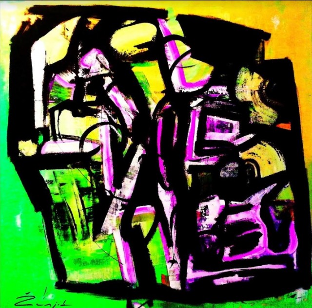 Cijeli je Žunjićev opus obilježen pulsirajućim ritmom, uznemirujućim pomicanjima, vrlo raznolikog i nejednakog ritma približavajućih i udaljavajućih ploha žestokog kolora