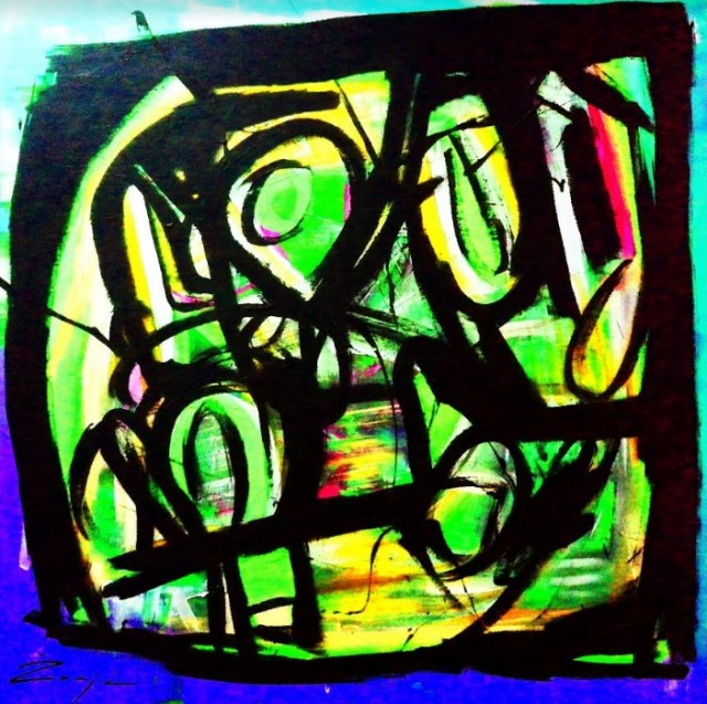 I sada suočen sa akrilima Mladena Žunjića posvećenih jednom od najvećih hrvatskih slikara, uopće, prisjećam se tih Šebaljevih „pušača" i pokušavam ih ugledati u ovim kompozicijama u kojima dominiraju vibrantna uvijajuća tijela ( dim pušača koji se lagano, lijeno razliva po površini crteža ali vjerojatno i dublje) dok se tijelo uživatelja očituje u geometrijskim oblicima, neravnomjernih linija, nimalo preciznih, uzdrhtalih od užitka, u različitim vodećim bojama, zelenoj, žutoj, plavoj, ljubičastoj, sve obrubljeno, limitirano crnim natkriljujućim linijama, nadzirateljima zbivanja i gibanja.
