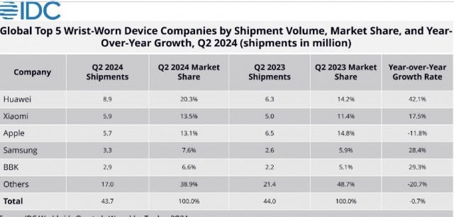 U prvih šest mjeseci 2024. godine, prema IDC-u, Huawei je ostvario impresivan porast isporuka nosivih uređaja na zapešću od 55,1% u odnosu na isto razdoblje prošle godine. Ovaj uspjeh osigurao je Huaweiju vodeću poziciju na svjetskom tržištu nosivih uređaja tijekom dva uzastopna kvartala, potvrđujući snažnu prisutnost brenda i stabilan rast.