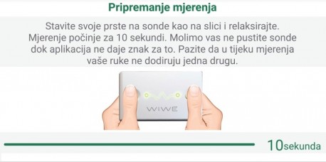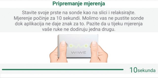 Pri tome pazite da vam jagodice nisu masne ili mokre za dobivanje što preciznijih rezultata mjerenja. Nakon što to učinite, za koju sekundu počinje mjerenje, koje ništa ne boli :D Napredak pratite kroz paljenje zelenih LED-ica. Na kraju se pojavljuje crveno svjetlo na desnoj strani prednjice što znači da je mjerenje završeno. Jednostavno, zar ne? Inače, proces traje 1 minutu i uređaj nastavlja s mjerenjem maksimalno još 10 sekundi, ako korisnik ne odmakne prste od elektroda.