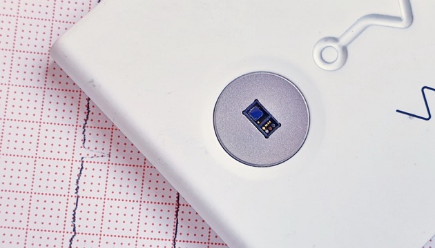 Prednja strana smješta dvije okrugle elektrode. Desno je negativna, a lijevo pozitivna s minijaturnim spektrometrom za mjerenje zasićenja kisika u krvi (SpO2) odnosno zasićenost kisikom hemoglobina koji transportira kisik iz pluća do svih dijelova tijela.