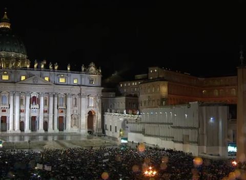 Nakon što je bijeli dim prestao izlaziti iz dimnjaka i utihnula crkvena zvona, trebalo je dvadesetak minuta da na trg pristigne svečana limena glazba i postrojba švicarske straže koji su zauzeli mjesto ispod balkona Sikstinske kapele uz klicanje Vivat papa!