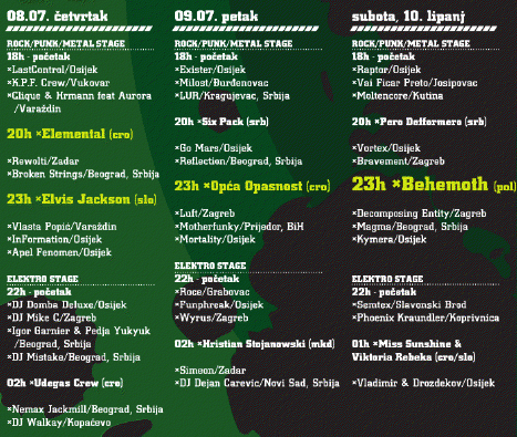 Da podsjetimo pred sam kraj: Urban fest uz Osječko 2010. održat će se od četvrtka 8. do subote 10. srpnja, a mjesto održavanja manifestacije je dvorište bivšeg kluba Vega za rock/punk/metal pozornicu odnosno dvorište galerije Kazamat za elektro stage.