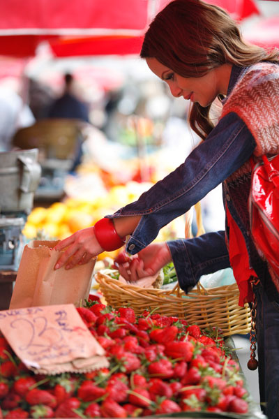 Ne treba ni gledati ove jagode, one nisu dobre. Sve što najbolje izgleda nije pravo- znalački mi šapće izmedu štandova. I dok radimo završne fotografije za naslovnicu pokraj kipa kumice na Dolcu, prilazi nam engleska turistkinja i moli Josipu da joj posudi svoju košaru kako bi i sama mogla imati takvu fotografiju. Kako i ne bi, kada košara puna probranog prirodnog povrća uistinu postaje nešto što vrijedi fotografirati za uspomenu.