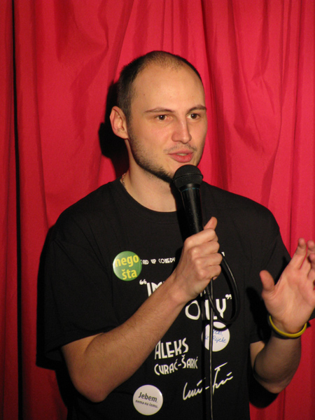 Aleks je, oduševljen brojem publike i totalno „in the mood", krenuo bez prestanka zabavljati prisutne u prepunom Movie pubu. Publika je izuzetno dobro prihvaćala njegove šale i pošalice, a svaki njihov duhoviti komentar Aleks je nagradio bedžem.