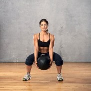 Spustite se u čučanj, podignite ponovno u stojeći položaj i zamahnite utegom ili medicinkom preko glave. Ponovite vježbu dvadeset puta.