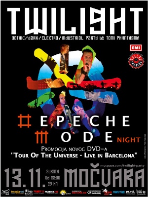 Novi Twilight Party u subotu 13. studenog bit će posvećen jednoj od najvećih svjetskih grupa, ujedno jednoj od najvećih alter grupa osamdesetih, Depeche Mode i to povodom njihovog novog DVD izdanja „Tour Of The Universe - Live in Barcelona" (EMI/Dallas Records). DVD izlazi 8. studenog u čak 3 različita izdanja, standard, deluxe i Blu Ray.