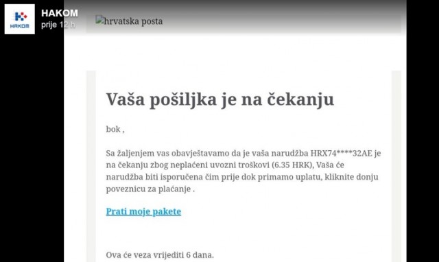 Hrvatska regulatorna agencija za mrežne djelatnosti (HAKOM) na Facebooku je objavio objavu o, kako kažu, novoj prevari na internetu