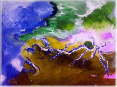 Značajna uskomešanost koloristički određenih ploha, koje se nelimitirano susreću u svom gibanju, izazivajući tektonske promjene,jasno govovori o izazovu teme koji umjetnik vidi i osjeća.