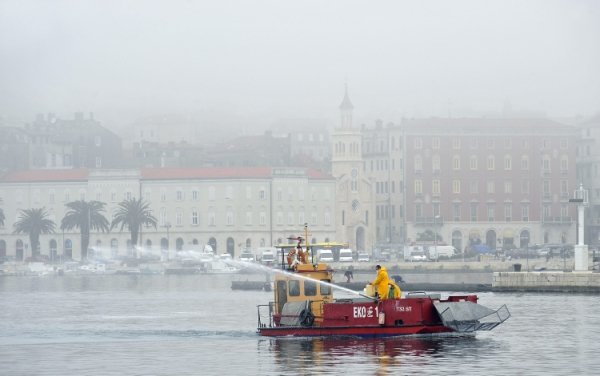 Očišćen najveći dio naftnih mrlja u maglovitoj splitskoj luci