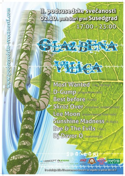 U sklopu glazbenog programa Podsusedskih svečanosti ove će se subote, 02. listopada održati open air koncert Glazbena vilica u parku staroga grada Susedgrada u Podsusedu.