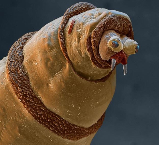 Snimljene pomoću moćnog elektronskog mikroskopa, ova sićušna stvorenja samo su neka od nekoliko vrsta insekata koji doslovce žive ispred naših noseva. Jedna od fotografija snimljena ovim mikroskopom može koštati i do 5 milijuna kuna, a pokazuje običnu kućnu grinju. Milijuni takvih žive u svakom domu.