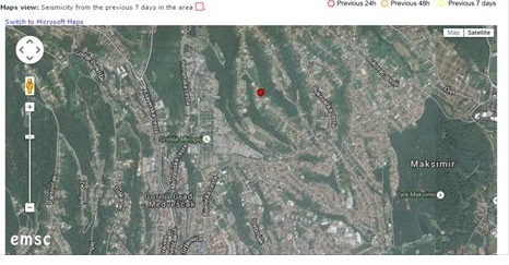 Novi podaci pristigli nakon analize potresa dali su ponešto različitu sliku - potres je bio jačine 2.6 po Richteru, a epicentar je bio - iznad Srebrnjaka, kao što se vidi na donjim slikama.