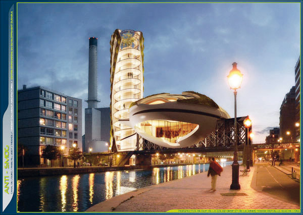 Anti-smog centar je javni objekt koji promovira najnovije inovacije na temu održivog razvoja u urbanim područjima i primjenjuje obnovljive energije kojima se bori protiv pariškog smoga. Objekt se sastoji od dva dijela: horizontalne ‘Solarne suze’ i vertikalnog ‘Tornja vjetra’.