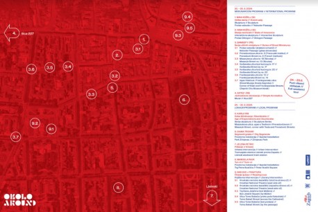 Postavljajući umjetničke radove u gradski krajolik „Okolo" od 2018. godine oživljava javne prostore i pretvara ih u mjesta gdje se umjetnost spontano dotiče svakodnevice grada. U prvi plan stavlja lokalne umjetnike i njihov osobni doživljaj i viziju grada, istovremeno približavajući suvremenu umjetnost široj publici. Događanje se ostvaruje uz podršku Turističke zajednice grada Zagreba i Grada Zagreba te partnera JUB boje i UpRent.