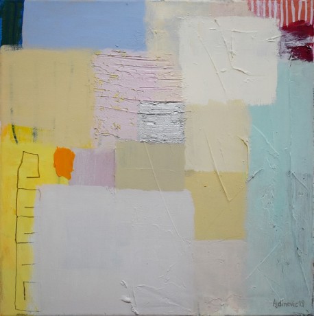 Ajdinović konstruira svoju smirenu imaginaciju formama, vrlo različitim, obilježenih dominantnim bojama i s ponekim znakom, prikrivenom simbolikom, progovarajući o osobnom promatranju i doživljavanju svakodnevnih pojavnosti.