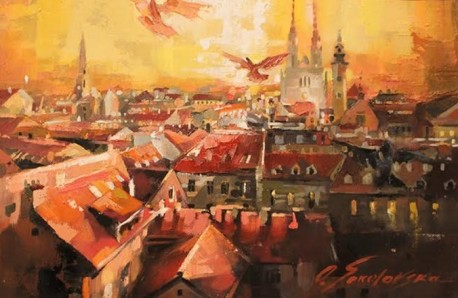 Živeći u Zagrebu napravila sam nekoliko ciklusa krajolika grada, primjerice „Zagreb, kak imam te rad", „Noćni život grada". Zagreb me podsjeća na zapadnoukrajinske gradove moje mladosti. U vedutama načinim sliku crvenkastom ili zlatkastom bojom i kroz njezinu površinu izvlačim detalje unutrašnjosti, zgrade, figure, često neonskog svjetla. Stvaram „ekranski efekt", duh grada, večernji život grada.Na nekoliko izložbi posvećenih Zagrebu, osim slika, ponudila sam i razglednice mojih slika. Mnogi posjetitelji na njima skupljaju upravo te razglednice s mojim autorskim potpisom.