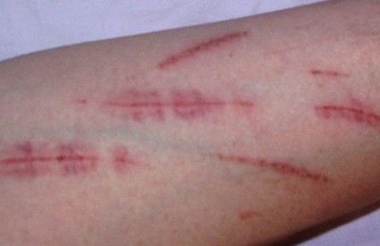 Osjećam kako se ljutnja gomila u mom tijelu, kao da se utapam u njoj nakon još jedne bučne svađe s roditeljima. Trčim u svoju sobu, lupam vratima. Želim se smiriti, ali to mogu samo kada gledam svoju krv. Bez razmišljanja posežem za nožem i prislanjam ga uz ruku. Rez prekida ljutnju i suze, daje mi kontrolu.