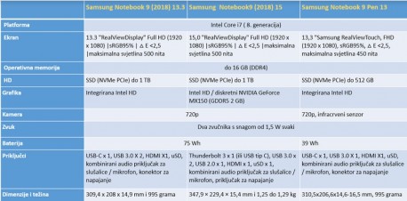 Samsung Notebook 9 čine tri modela. Svi dolaze u ultra tankom kućištu od legure magnezija i aluminija, imaju skener za otiske prstiju i kameu za Windows Hello u sustavu Windows 10. Također, kapacitet baterije je 75 W s podrškom brzog punjenja.