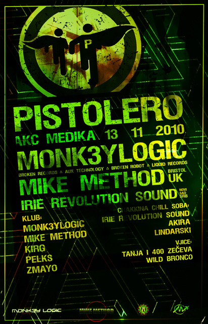 Subota 13.11./ Psy-Breaks/ Pistolero w/ Monk3ylogic & Mike Method (Bristol / UK) + Irie Revolution Sound