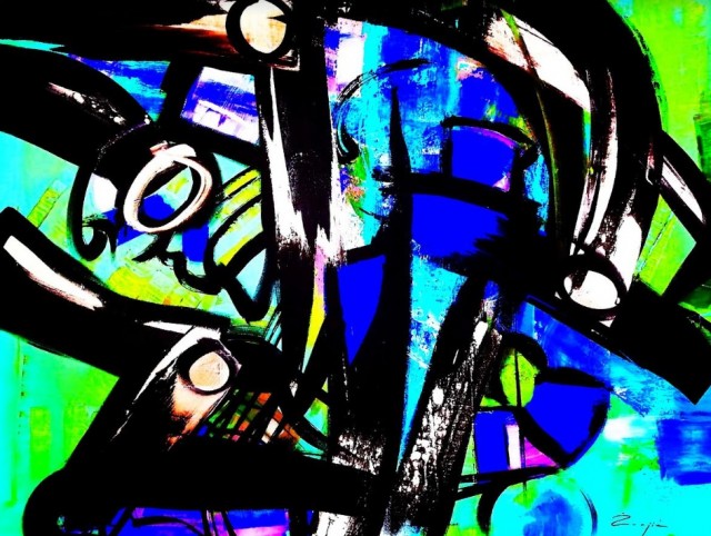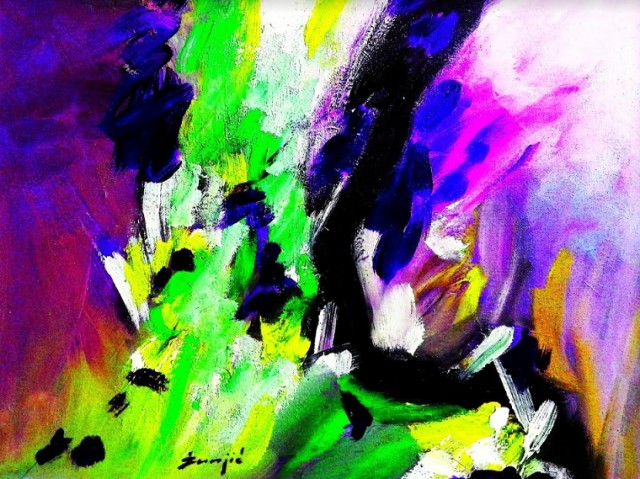 Žunjić ostaje čvrsto u prostoru između figuracije i nefiguracije ali i dalje, kontinuirano istražujući raznolike i raznovrsne kombinacije boja uz pozorni odabir dominantnih