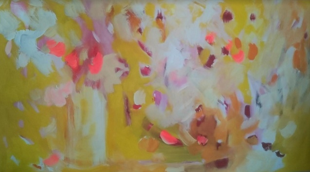 Ponekad se i slikarica malo zaigra i motiv cvijetova s vazom pretvori u apstraktni doživljaj nakupina, mrlja i točkica boje, jednako slijedeću svoj ideju o jedinstvenoj atmosferi.
