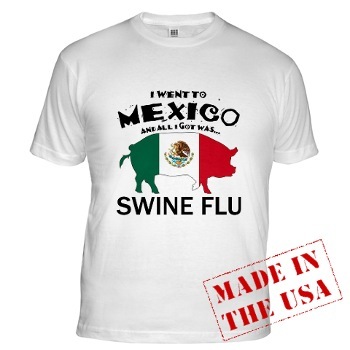 Američki portal www.zazzle.com nudi barem dvadesetak različitih majica s natpisima tipa Bio sam u Meksiku i sve što sam dobio je svinjska gripa ili Swinebusters, po cijenama od 19 dolara, a uz to idu i pripadajući privjesci za ključeve, šalice, kape, kravate i slične stvarčice po cijenama od šest do trideset dolara.