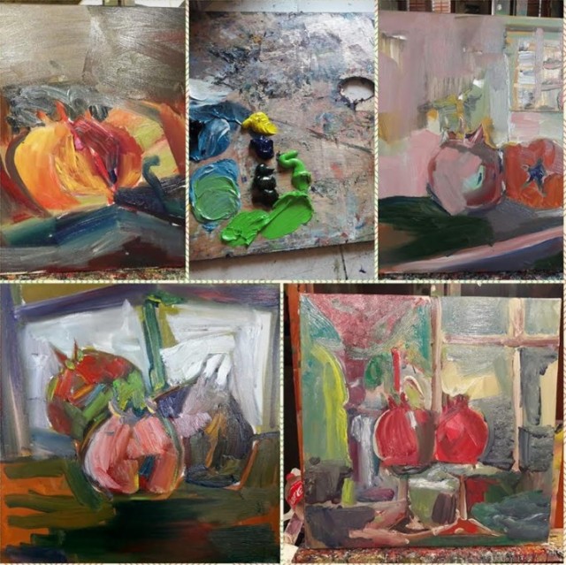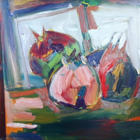 Jedan takav niz pojavio se nedavno realiziran u slikarevom atelijeru s naizgled jednostavnim motivom, koji miruje ispred slikara i štafelaja, u slikama srednjeg formata s motivom šipka, voćem iznimna ukusa, raznoliko koloristički interpretirani.