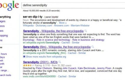 Iako primarno služi kao prečac do rječnika, „define:" može poslužiti i za mnogo drugih stvari. Ne samo da njome možete dobiti objašnjenje individualnih riječi već i značenja akronima, fraza, tehničkih pojmova pa čak i slenga. Rezultate Google nalazi na Wikipediji, Wiktionaryu, WordNetu i svim ostalim stranicama koje sadrže definicije i ostalo enciklopedijsko znanje.