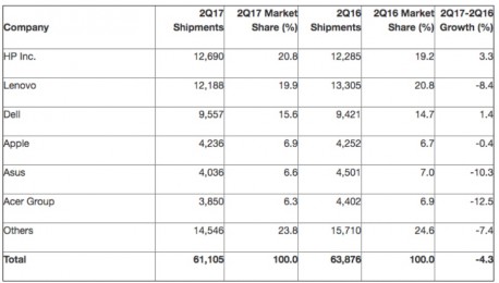 Prema preliminarnom izvješću tvrtka za istraživanje tržišta Gartner, u drugom tromjesečju ove godine ukupna isporuka PC računala je dalje u padu.