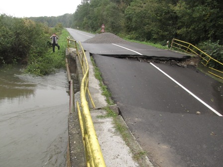 Zbog bujice koja je nosila sve pred sobom srušio se propusni most na 25. kilometru državne ceste Sisak-Popovača. Od subote u 16 sati ta je cesta zatvorena za sav promet.