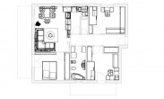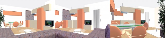 Budući da je postojeća kuhinja ispresijecana komunikacijama pa samim tim i loše iskorištena, predlažemo promjene koje će otvaranjem kuhinje prema dnevnom traktu preko šanka stvoriti dodatni prostor za sobu i omogućiti smještaj blagovaonice i dnevnog boravka.