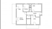 Ulaz u kuhinju je predviđen iz hodnika, a s dnevnom je zonom ostvarena samo vizualna komunikacija. Ovakva koncepcija omogućuje smještaj velikog blagovaoničkog stola uz sami šank, kako bi veza s kuhinjom bila što izravnija. Predlažemo da zid ostave srušite, jer je ostava premalena i dodatno se troši prostor za komunikaciju. Praonik i perilicu smjestite u zoni ostave, a štednjak s izvlačnom napom u šank.