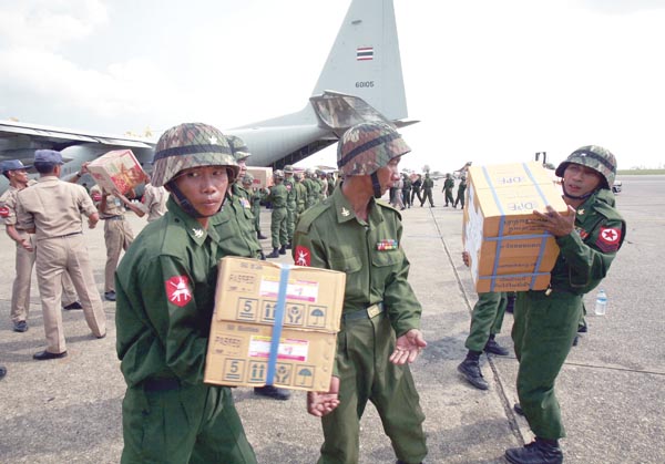 - 250 tisuća dolara pomoći poslao je SAD. Bush je od mijanmarskih vlasti zatražio da odobre slanje dodatne pomoći, a njegova supruga Laura kritizirala je vojnu huntu.