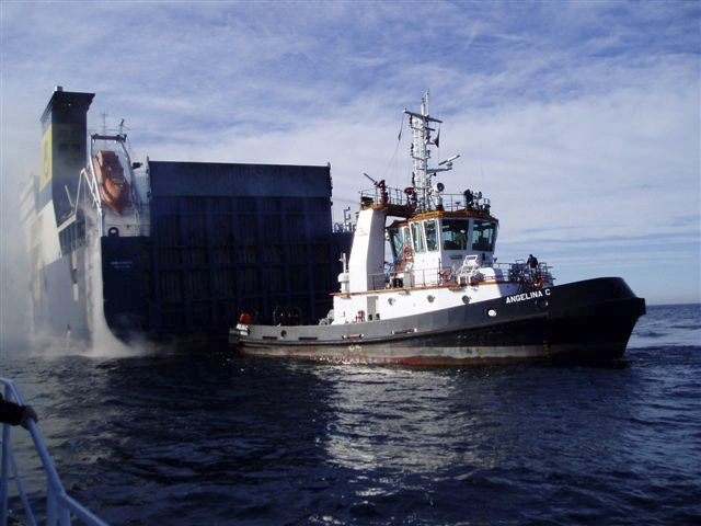 Ekipa Nizozemskih stručnjaka jučer je samo nakratko stupila na brod da izvidi situaciju i razradi plan gašenja požara, međutim nisu mogli do utrobe broda. Brod je još uvijek toliko užaren, da to nije bilo moguće izvesti.Iako na brodu jučer nije bilo otvorenog plamena, još uvijek je sukljao gusti crni dim. Čeličnim užetom brod su zakvačila dva talijanska tegljača i osiguravaju negovo nekontrolirano plutanje.
