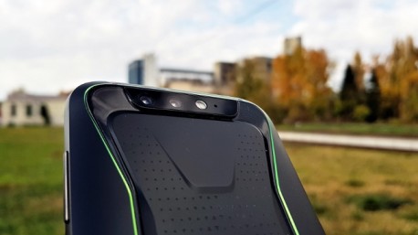 Prema gornjem bridu su dvostruka kamera i LED bljeskalica u vodoravnoj formaciji, dok je u donjem naziv uređaja - 'Black Shark'. Također, ako se bolje zagledate bliže središnjoj osi, ne možete ne primijetiti blago uzdignute krakove trapeza ispod kojih su antene u X formaciji. U biti, ovo rješenje osigurava da signal ne slabi tijekom igranja ili postane „mrtav" bez obzira kako držite pametni telefon.
