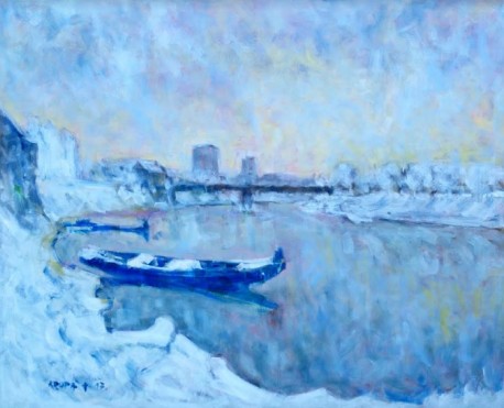 Dok slika mirnu, gotovo zaspalu rijeku ispod mosta u nedalekom gradu, Krupa se prisjeća zvukova i riječi iz djetinjstva, događaja davnih, kojih se možda više nitko i ne sjeća, svakodnevnih životnih nevolja i problema, dok mu ruka zastaje na sjeni što je stvara most iznad lijene rijeke.